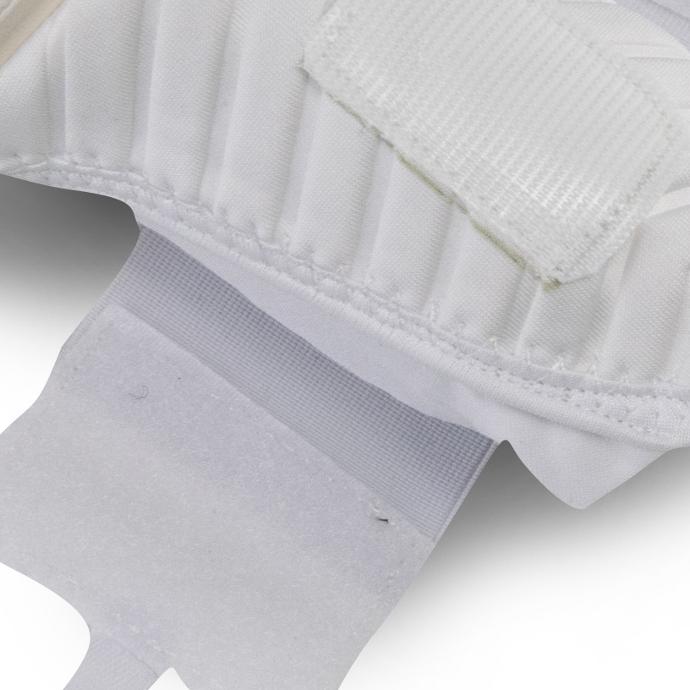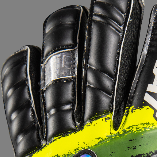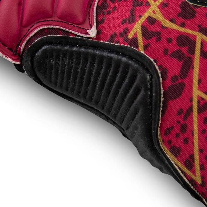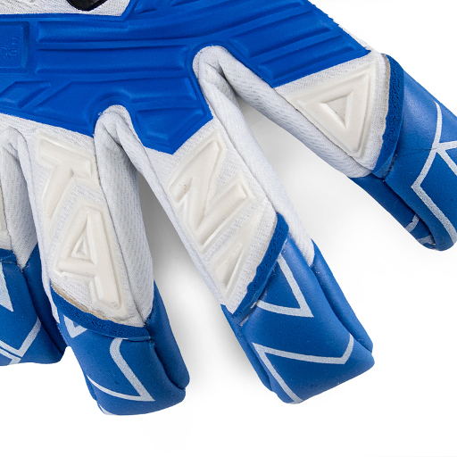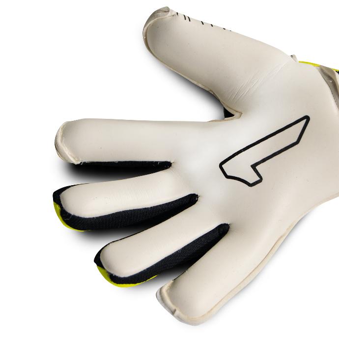The latex of the palm surrounds almost completely the index and little fingers, joining with the application of the back. In the ring and middle fingers we have negative cut, the inner seams make it feel more fitted, specially designed for those who seek maximum contact feeling with the ball.